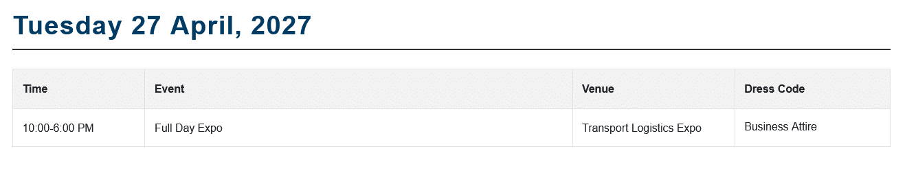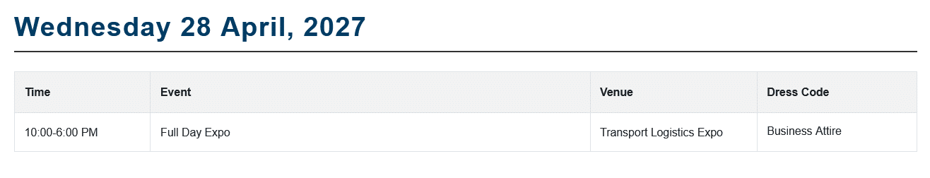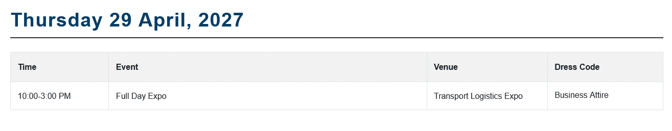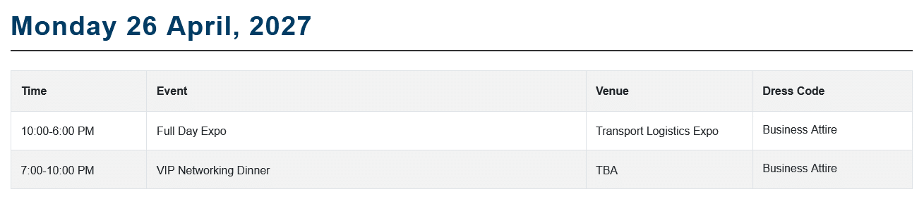 Present yourself at transport logistic 2027 and experience the benefits firsthand! As the world’s leading trade fair for logistics, mobility, IT, and supply chain management, this event provides a unique platform for industry experts, manufacturers, users, and researchers. Discover a wide range of machinery, equipment, processes, and services. Transport logistic covers all areas of the logistics industry and showcases innovative solutions for the challenges of tomorrow.